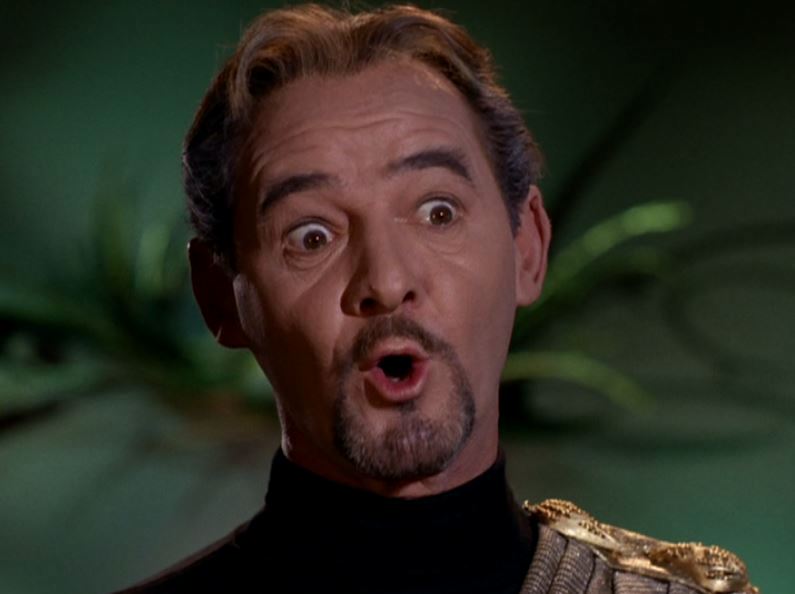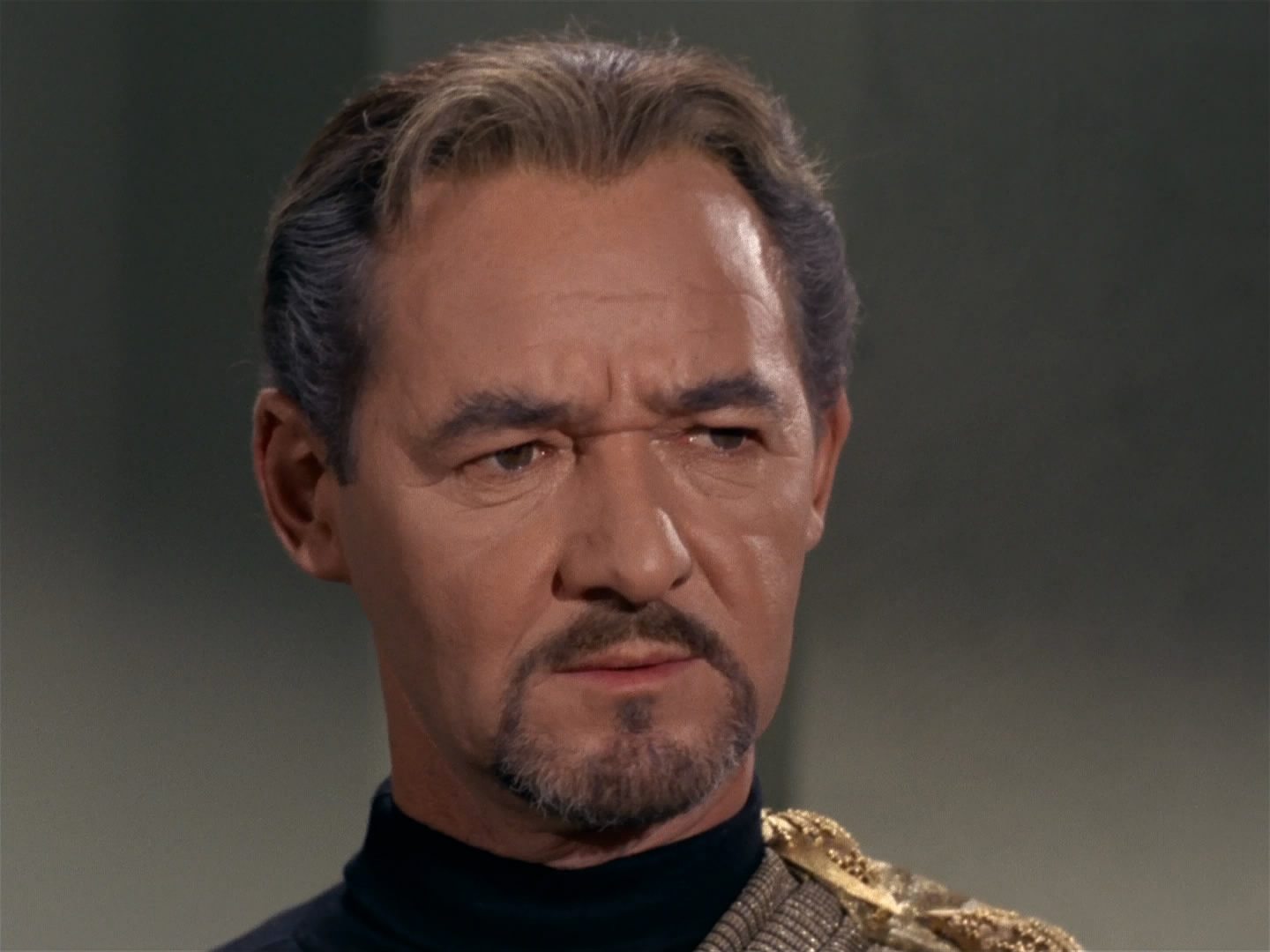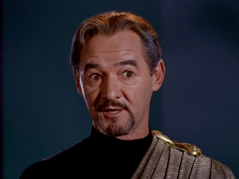 And now the scene the fans paid their money for. The truly great Anan 7 displays his almost preternatural poise, sangfroid, and unruffle-ability, as Captain James Kirk (William Shatner) does his level best to rattle and intimidate the First Councilman. He uses every trick in the book, and even a few others, generally stored in private reserve; almost anyone else in history would indeed have been unnerved. Anan 7 not only utterly maintains his calm, but also his courtesy. And, for that matter, his humour. Even Kirk seems a bit amused/impressed by the epoch-defining aplomb and self-assurance that easily withstood the heavy artillery.