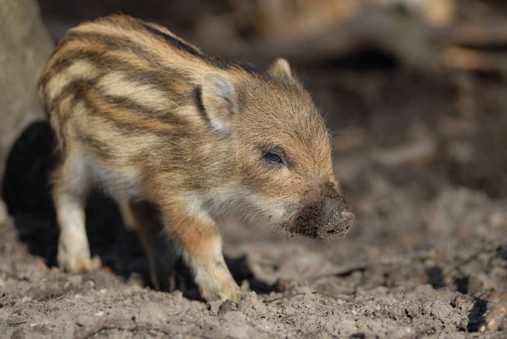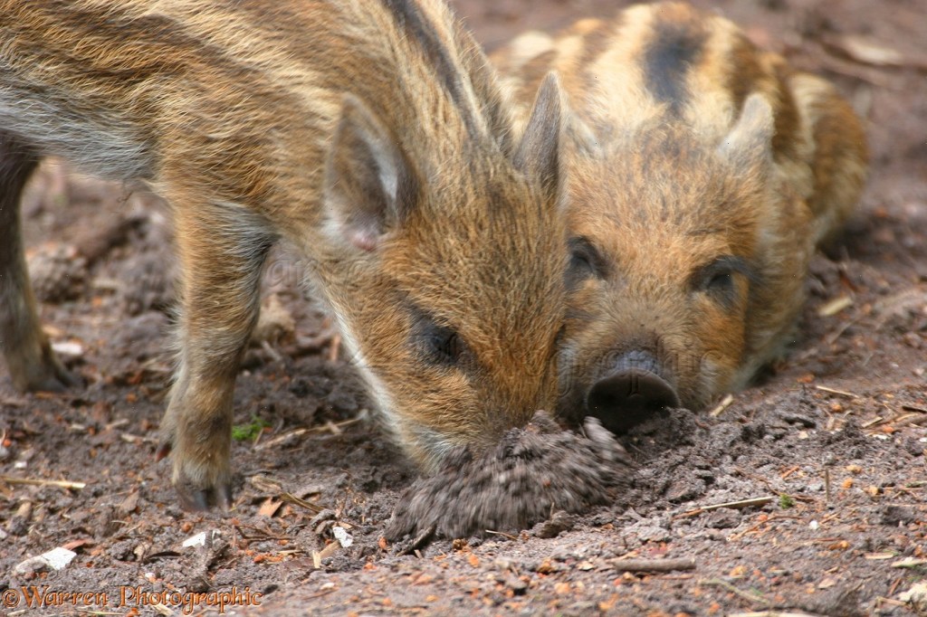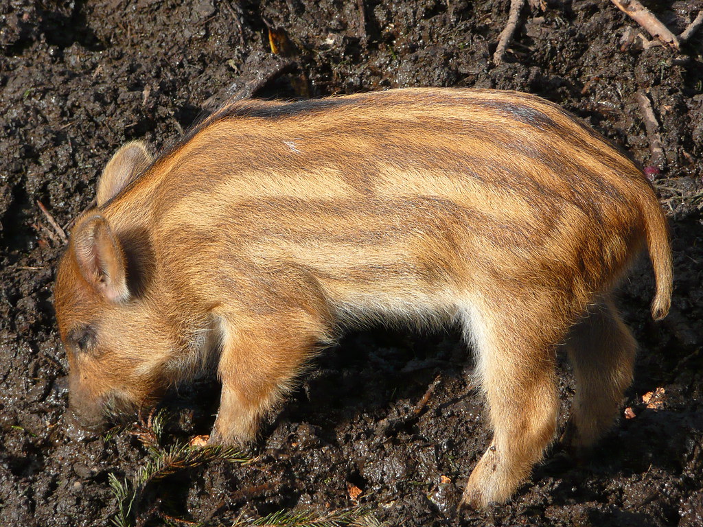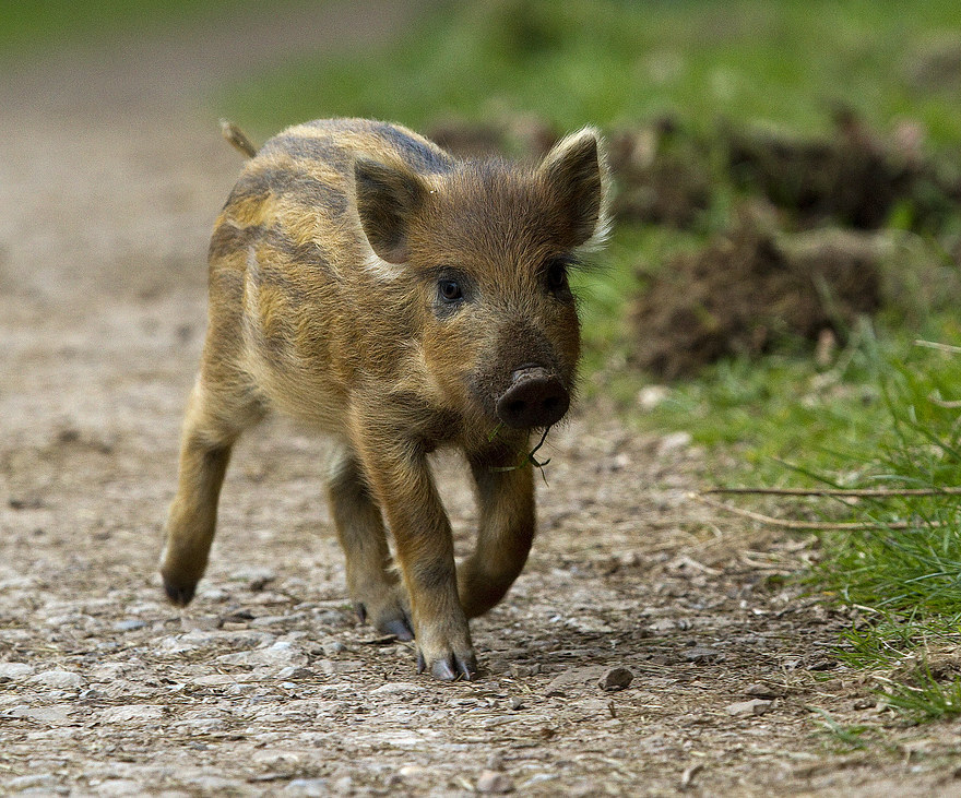These, then, are Wild Boar Piglets. Though their Bite Force Quotient does not even remotely challenge that of, say, the Tasmanian Devil, for example, they are every bit as high-ranking on the Cuteness scale. A card-carrying Suid {artiodactyl}{even-toed ungulate}, the beast is also known as the wild swine, in case you were wondering. Behold these piglets.